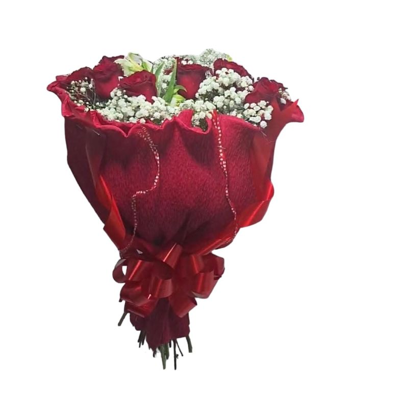 Buquê com 12 rosas vermelhas e mosquitinho.